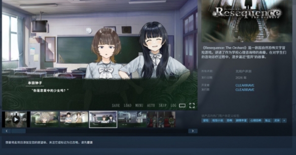 日本游戏开发商CLEAR RAVE近日正式公布了恐怖视觉小说新作《Resequence: The Orchard》(诡序之园)。这款超自然题材文字冒险游戏计划于2026年登陆Steam平台,确认支持英语、日语和简体中文,未来或将追加更多语言版本。