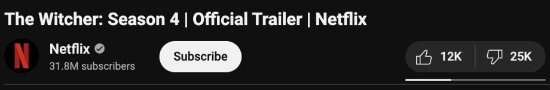 《猎魔人》第四季近日正式宣布将于10月30日回归,并发布了全新预告片。然而,与官方期待的兴奋不同,这支预告片在海外粉丝社群中引发了强烈不满,目前视频的“踩”数已远超“赞”数。